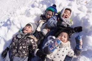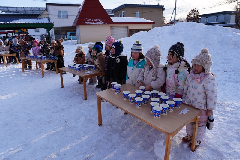 0-5歳 4歳児(やまぐみ) 今年も雪が降るのを待ち遠しくしていたやまぐみさん⛄❤ 今年の冬は第三公園、第四公園にたくさん通いましたよ! 第三公園にあるソリコースでソリ滑りをしたり、第四公園では急斜面を利用して尻滑りを楽しみました♪ そのほかに“やまぐみこおりまつり”も開催しました🤩 アイスキャンドルづくりに、アイスづくり、たくさんの準備をして当日を迎えました! 当日はみんなにアイスを振舞えて、やりきった表情の子どもたちでした🍨✨