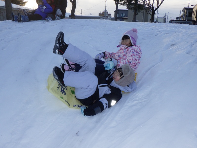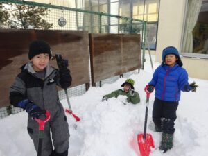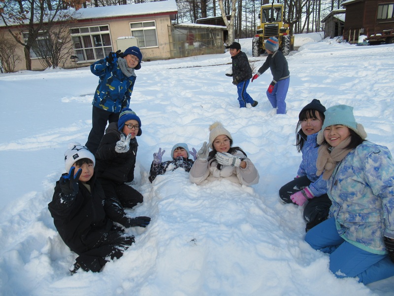 12月に入り雪が降ってきました!皆外に出て、かまくらづくりや雪だるまづくり、ソリ滑りなど、楽しく遊んでいます♪