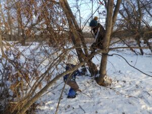 ・河川敷の水辺の楽校で木の家づくりや木登りをして楽しむ分室の子どもたちです✨