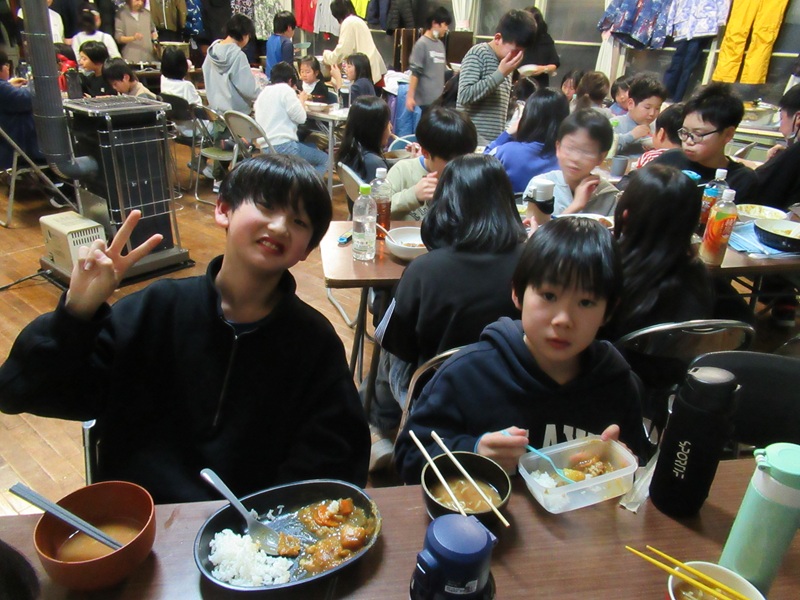 自分たちで調理したものは、手打ちうどん、ラーメン、カレー、ホットドッグ、コーンスープです。